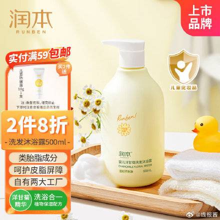 润本 婴儿儿童洗发水沐浴露500ml