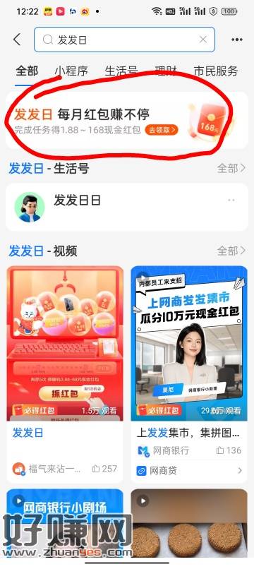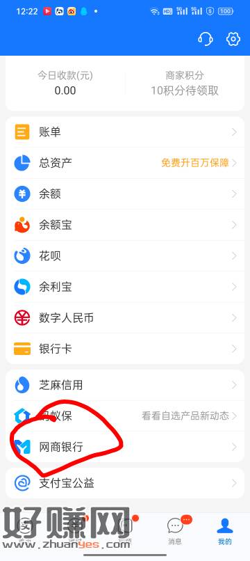 支付宝搜索发发日,任务全部做下,支付宝我的网商银行进去,点击