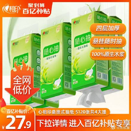 百亿卟贴,15.8亓 ,心相印4层悬挂式抽纸2提,