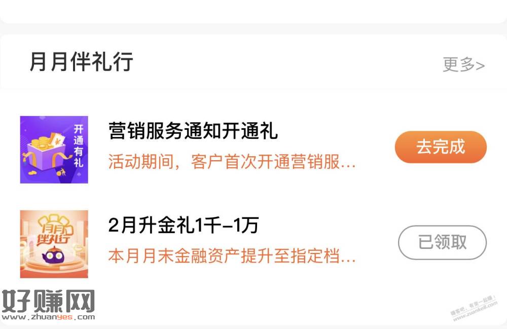 2月做了光大升金瘦腰任务的,记得领奖。路径:光大银行APP-我的-权益服务-月月伴礼行。