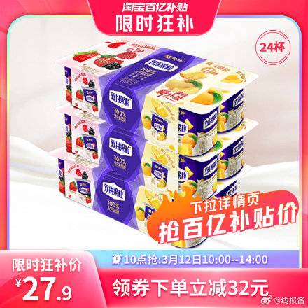 蒙牛双拼果粒风味酸奶24杯!