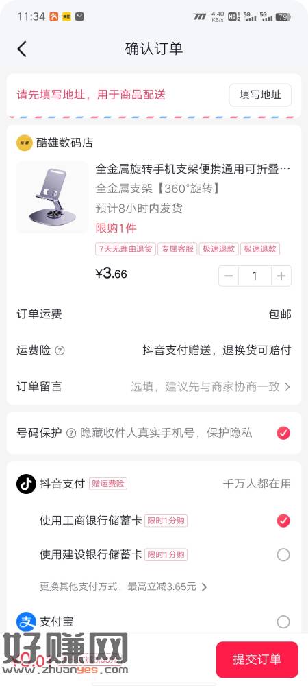 0.01金属手机支架 ,有抖音支付卷/优惠劵白嫖支架。