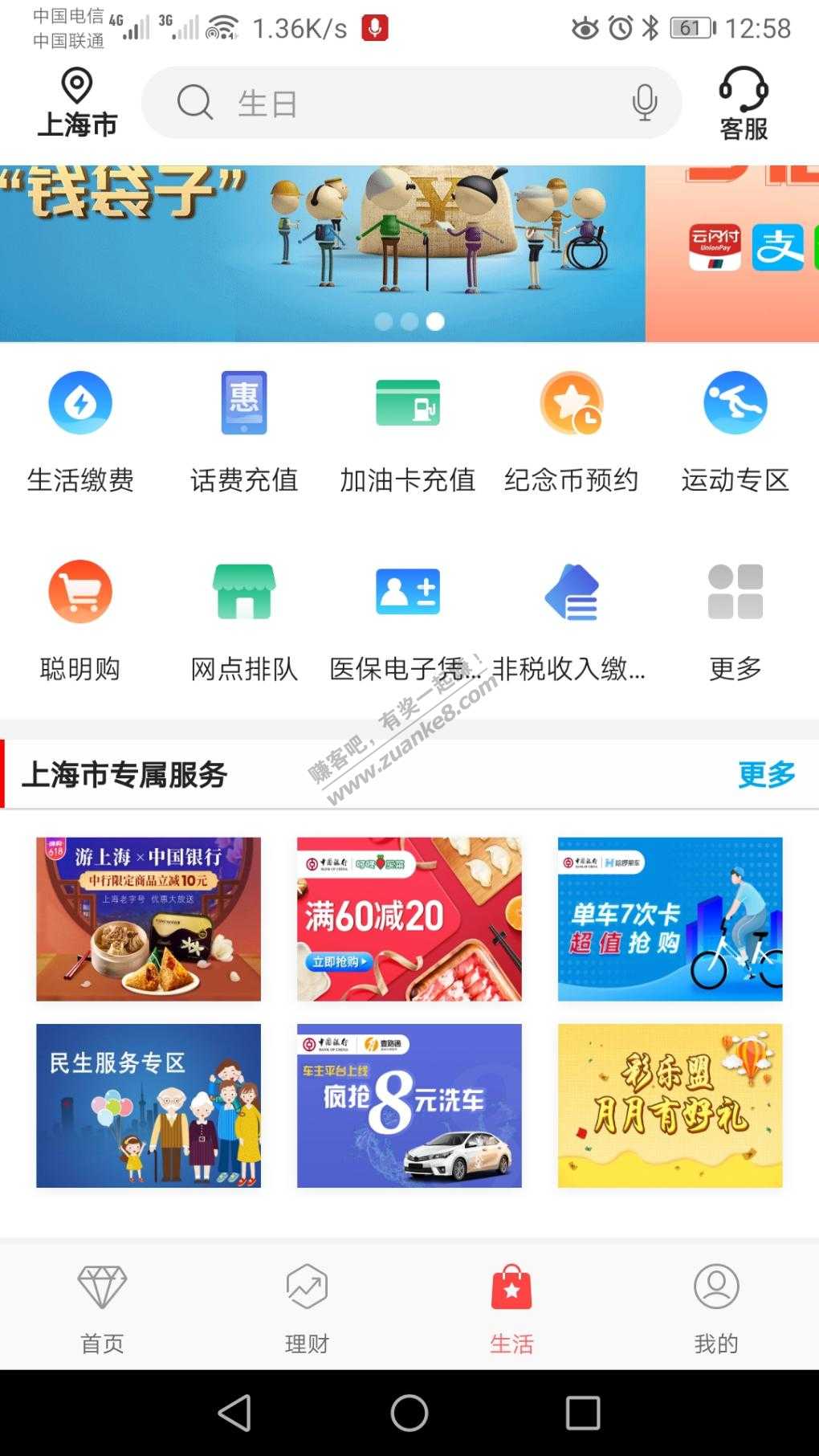 路径:中国银行app 生活 上海市专属服务