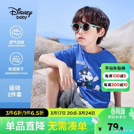 先领10元补贴券 ,迪士尼 男女童运动2件套