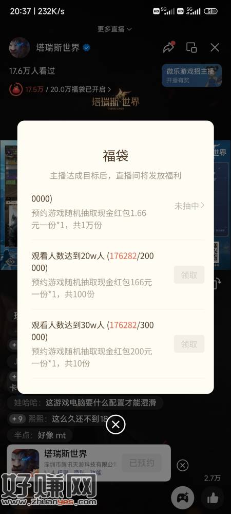 塔瑞斯世界公众号直播间福袋