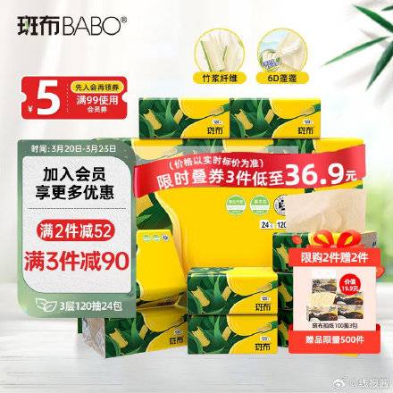 斑布抽纸 3层120抽*24包M码大包 135*200mm
