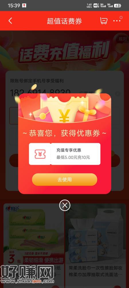[ 京东 ]送您5元话费充值专属福利,仅限今日有效,速来领取使用