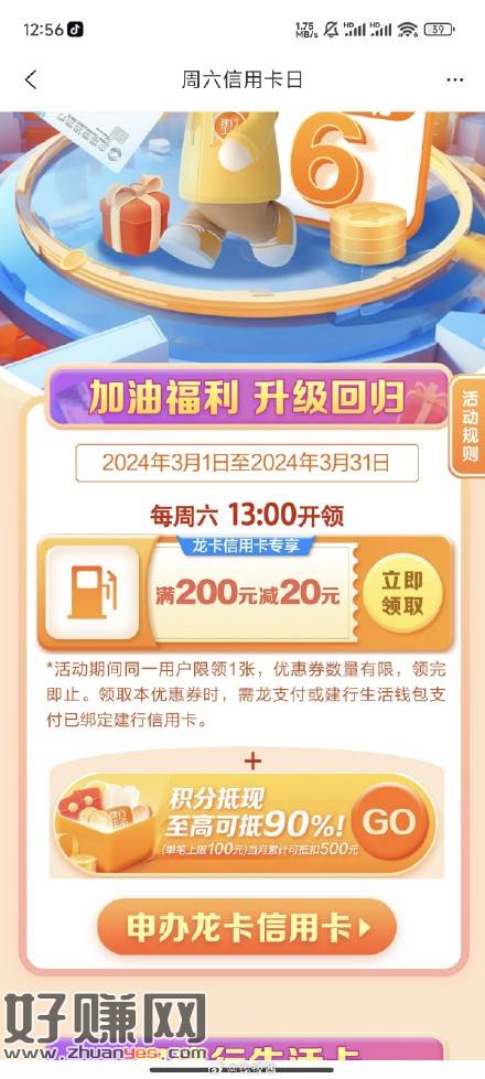 建行生活,热门活动,信用卡日,13点有200-20加油