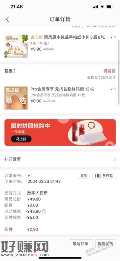 购物车鸡蛋跟手帕纸一起提交选数字钱包支付0.9