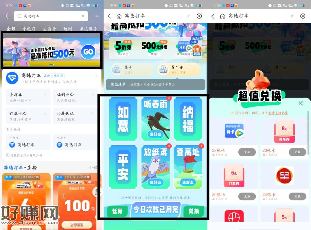 新一期!支付宝搜索“高德打车”->点击横幅进入->简单浏览得