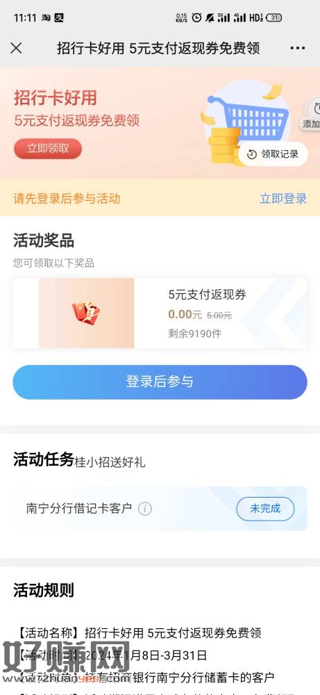 招行5元毛-限南宁招行卡,还有9000多份
