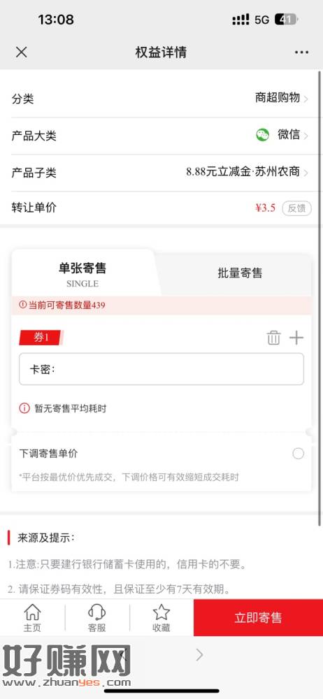 快 我前面发的苏州农商玖玖开寄售了 速度去卖