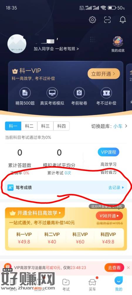 2、复制文案并且在驾考宝典找到成绩图截屏发到小红书。