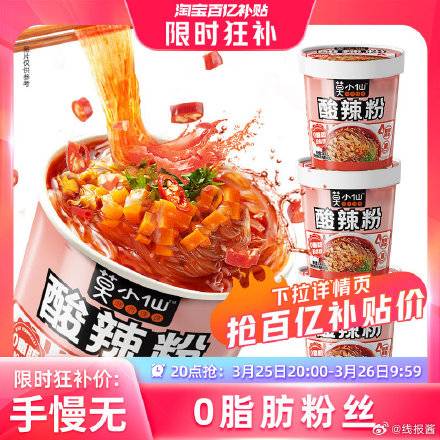 20点,百亿补贴9.9亓, ,莫小仙酸辣粉100g*3桶