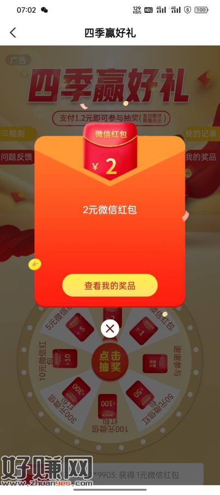 ,选择“掌银月月礼”参加,第4次中奖。转发无效拒收请回复R