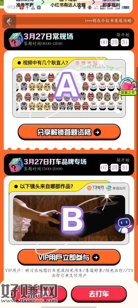 百度地图APP搜索“打车预言家”->选择答案答题得5~30亓打车券,券仅限当天可用