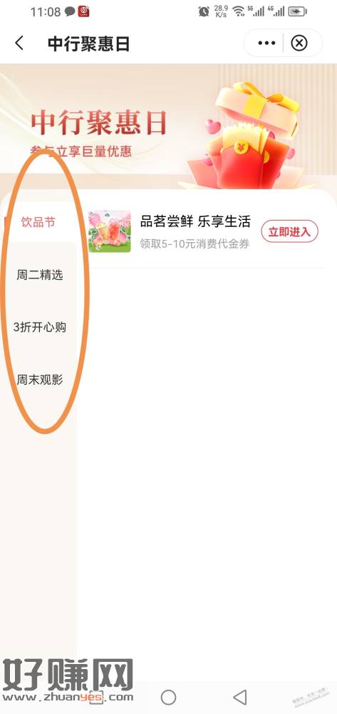 中行APP生活,城市服务,中行聚惠日,四个都能参加