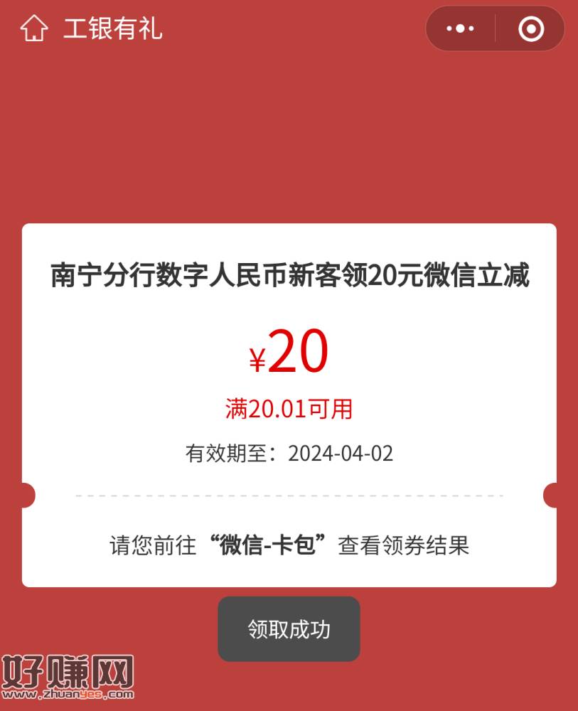 南宁工行20立减金可以领了,之前做了任务的去领