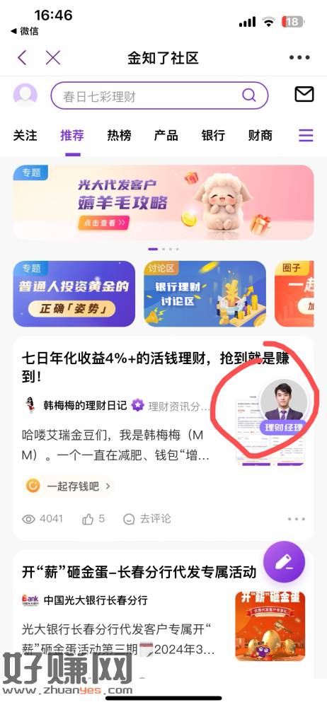 光大银行 直接搜金知了 社区点进去速度10
