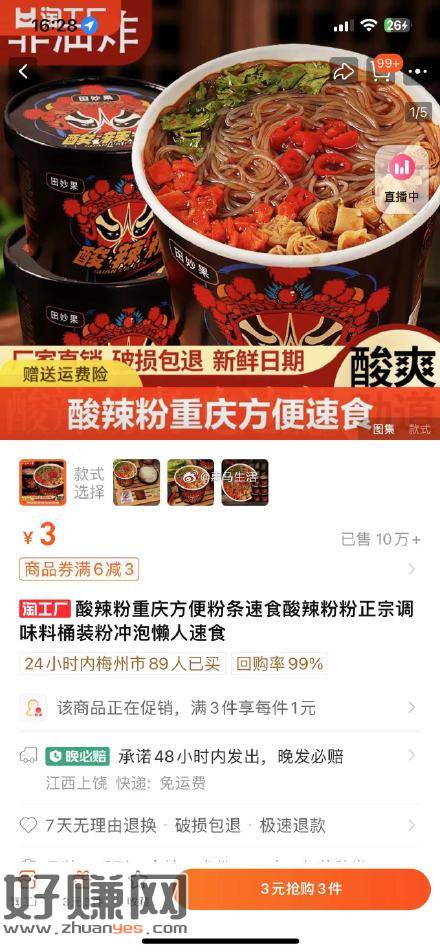 速度撸个BUG3元3件!正宗重庆酸辣粉122g*3桶