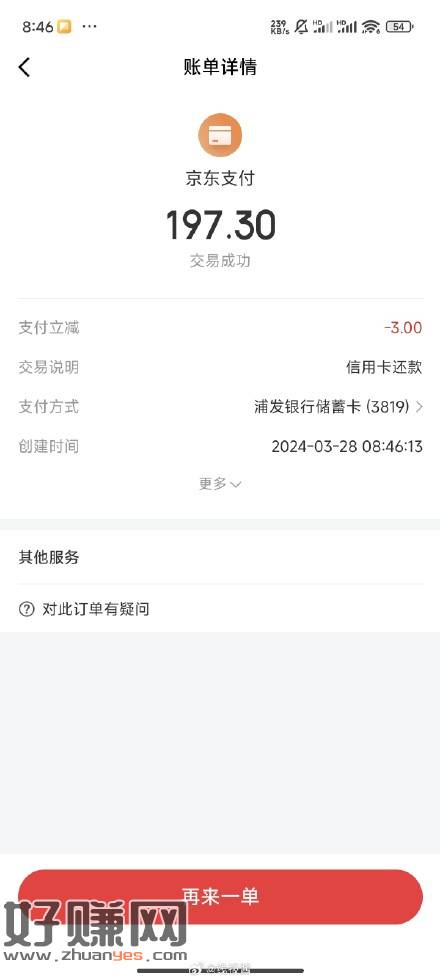 京东金融还信用卡,浦发银行有随机减,200-3左右