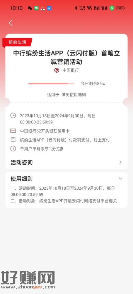 以前做过的也可以做 今天重置了 缤纷生活APP 中行xyk被扫30-10 有码用码t 无码的电网交电费也行