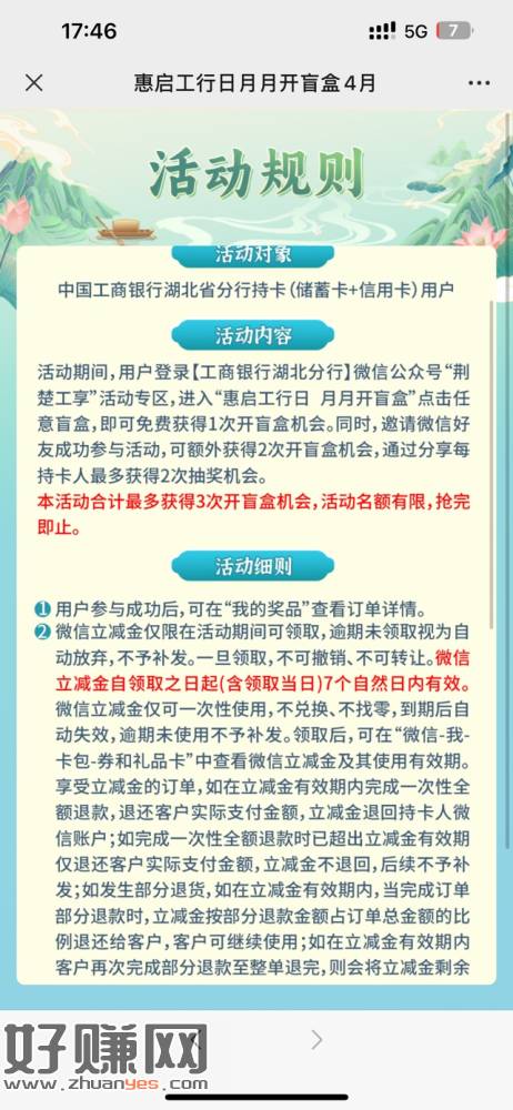 湖北工行扫码开盲盒 不必中 拉人可以抽三次 不要说我有头 我已经抽完了 限湖北卡