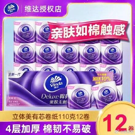 20点,百亿补贴13.9亓 ,维达卷纸有芯卷筒纸巾12大卷