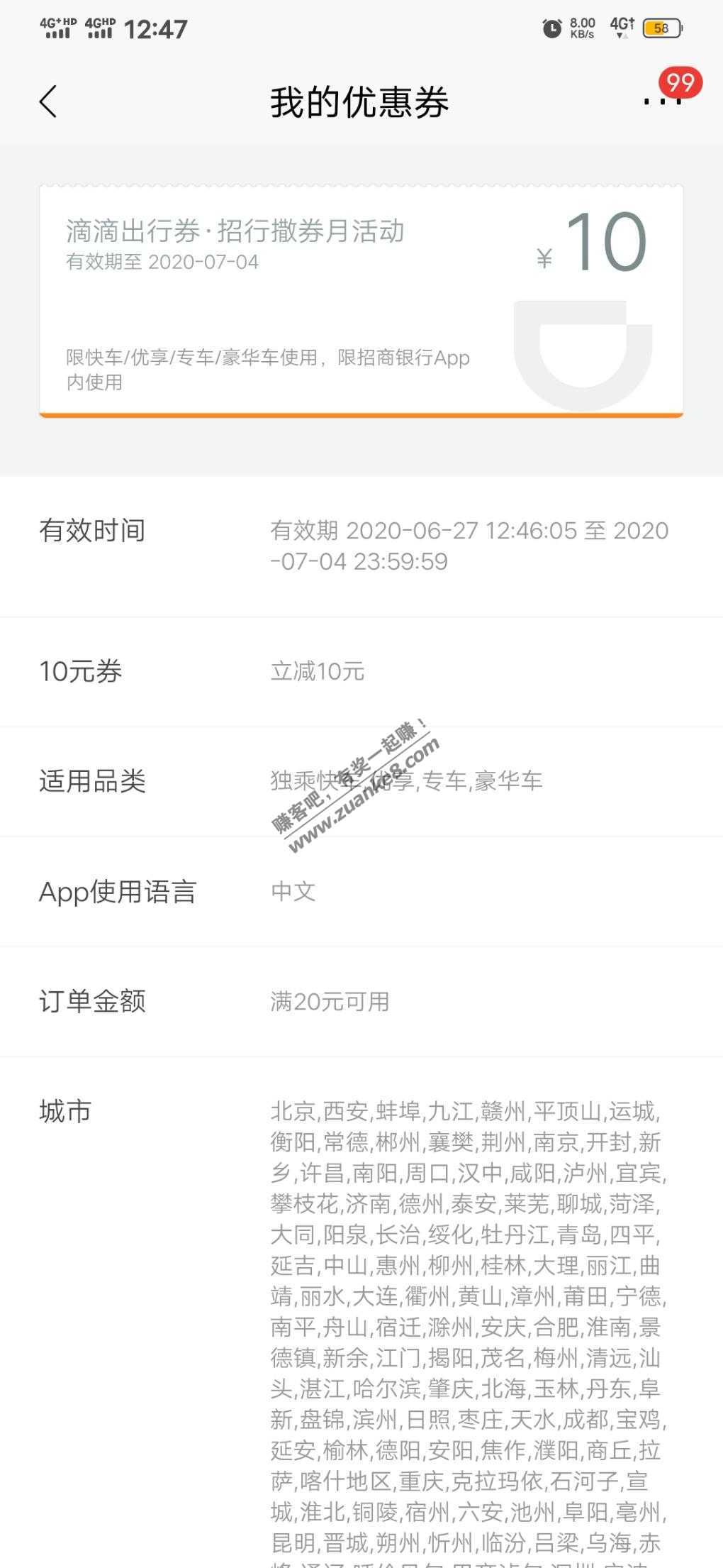 招商银行滴滴10元优惠券