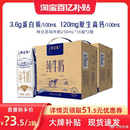 百亿补贴,83.5亓, ,特仑苏纯牛奶16盒*2箱!