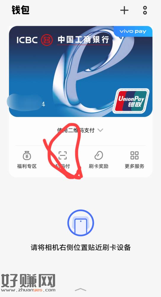 打开钱包-手机pay-去刷卡-选择扫付(不是被扫)