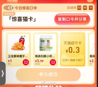 今日猫超口令【惊喜猫卡】翻牌可领猫超卡‼试试手气!
