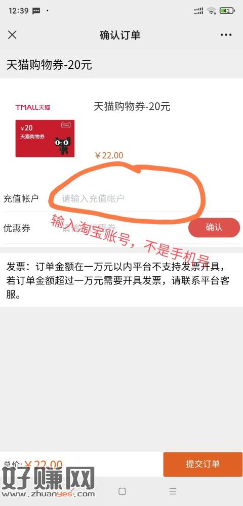 首页20天猫购物券,输入是淘宝账号不是手机号,输入手机号反撸