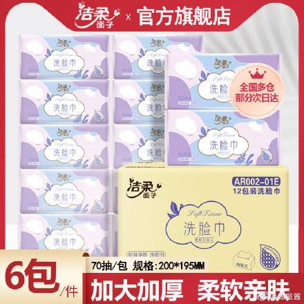 百亿卟贴,6.9亓 ,洁柔干湿两用洗脸巾70片*1抽