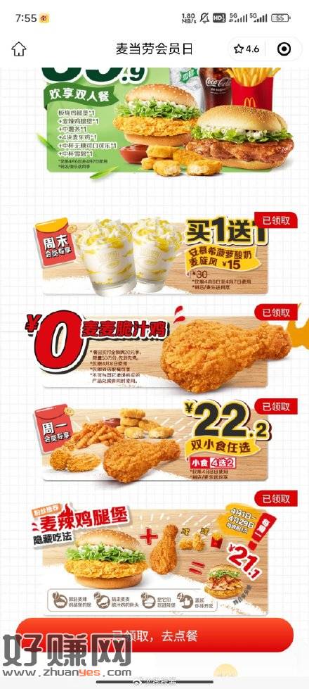 0元麦麦脆汁鸡,需满20随单,4.8可用