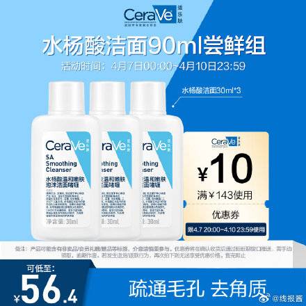 百亿补29.9亓 ,适乐肤水杨酸洁面30ml*3支,