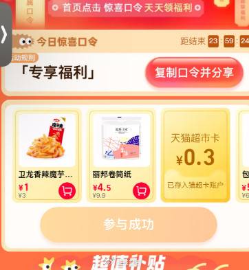 今日猫超右下角惊喜口令【专享福利】翻牌可领猫超卡