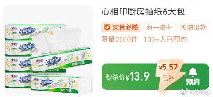 14点百亿补贴,13.9亓 ,心相印厨房用纸吸油吸水6大包