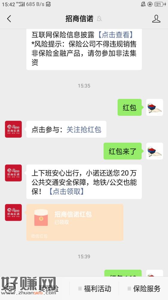 关注招商信诺如图,领取需要用手机收取一个验证码