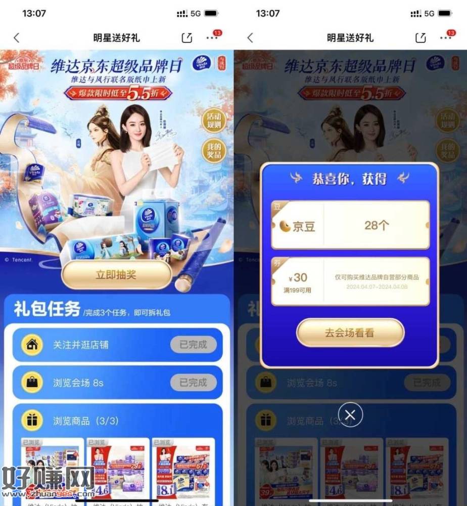 新一期!WX打开跳转京东APP->简单浏览领10~88个京豆