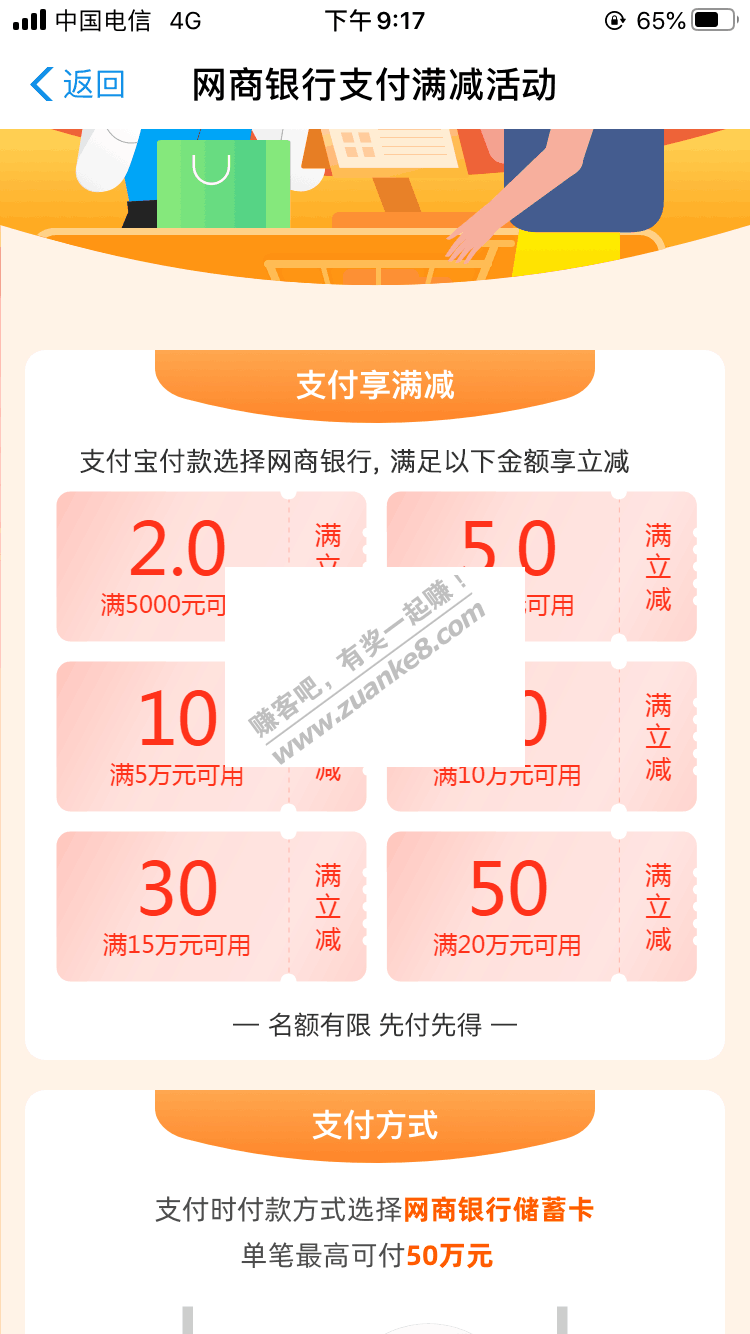 秒到50元项目,放20万在网商银行,然后把钱转给小号立减50
