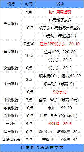6月29号周一 各大银行活动优惠
