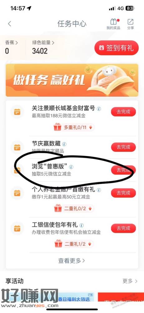 工行APP-搜任务中心-浏览普惠版-抽5lj
