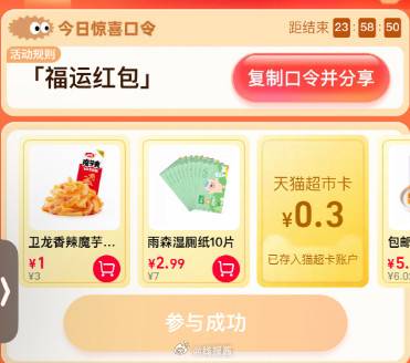 今日猫超右下角惊喜口令【福运红包】翻牌可领猫超卡