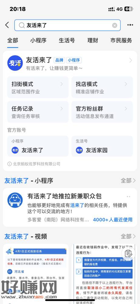 支付宝小程序-友活来了,帮支付宝平台扫街,一单一结