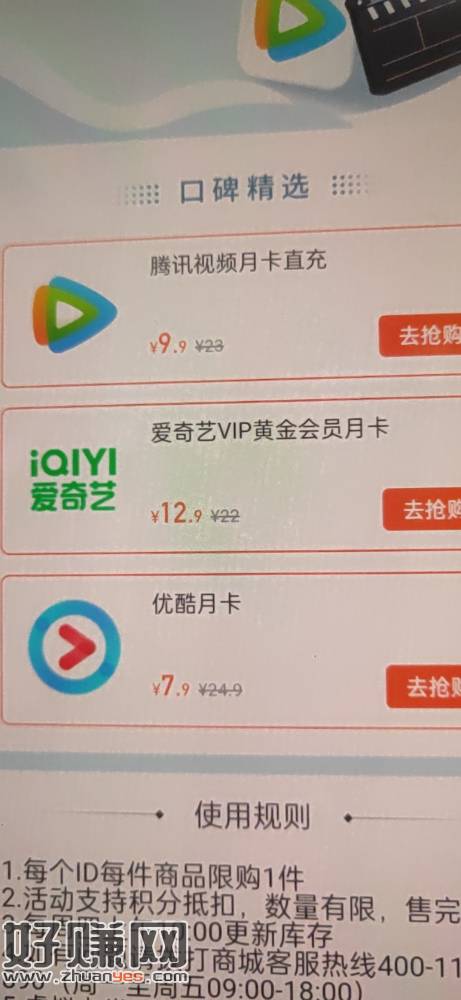 南银法巴消金商城美好生活馆 9.9充腾讯月卡 最低4润 冲冲冲 库存有限每周4补 可以积分抵扣 不需要实名多号多充