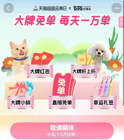12点开始,手淘搜[ 宠物大牌免单 ],概率有免单,有需要蹲