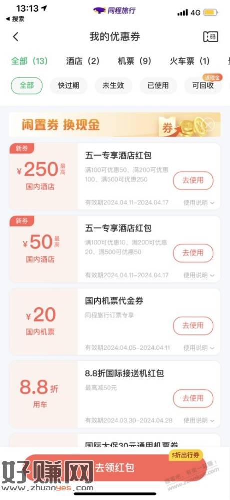同程500-250酒店券