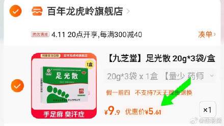 5亓,九芝堂足光散20g*3袋*1盒