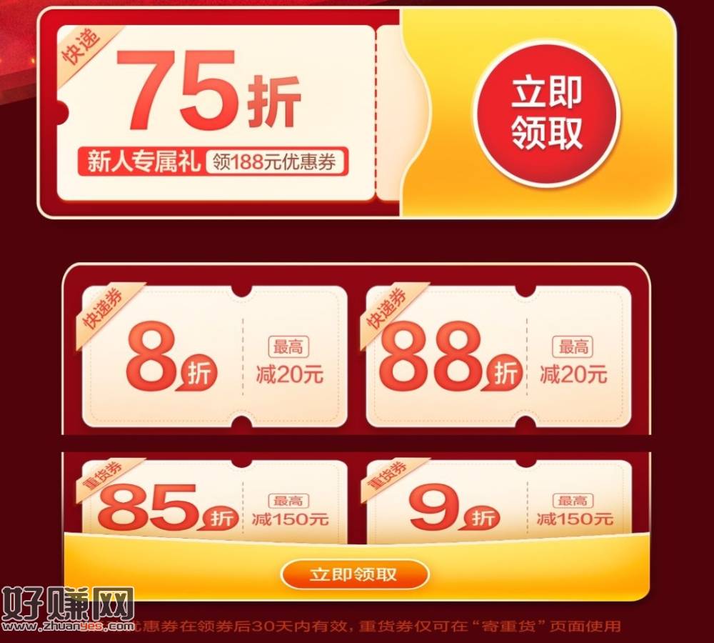 京东快递75折 8折寄件券